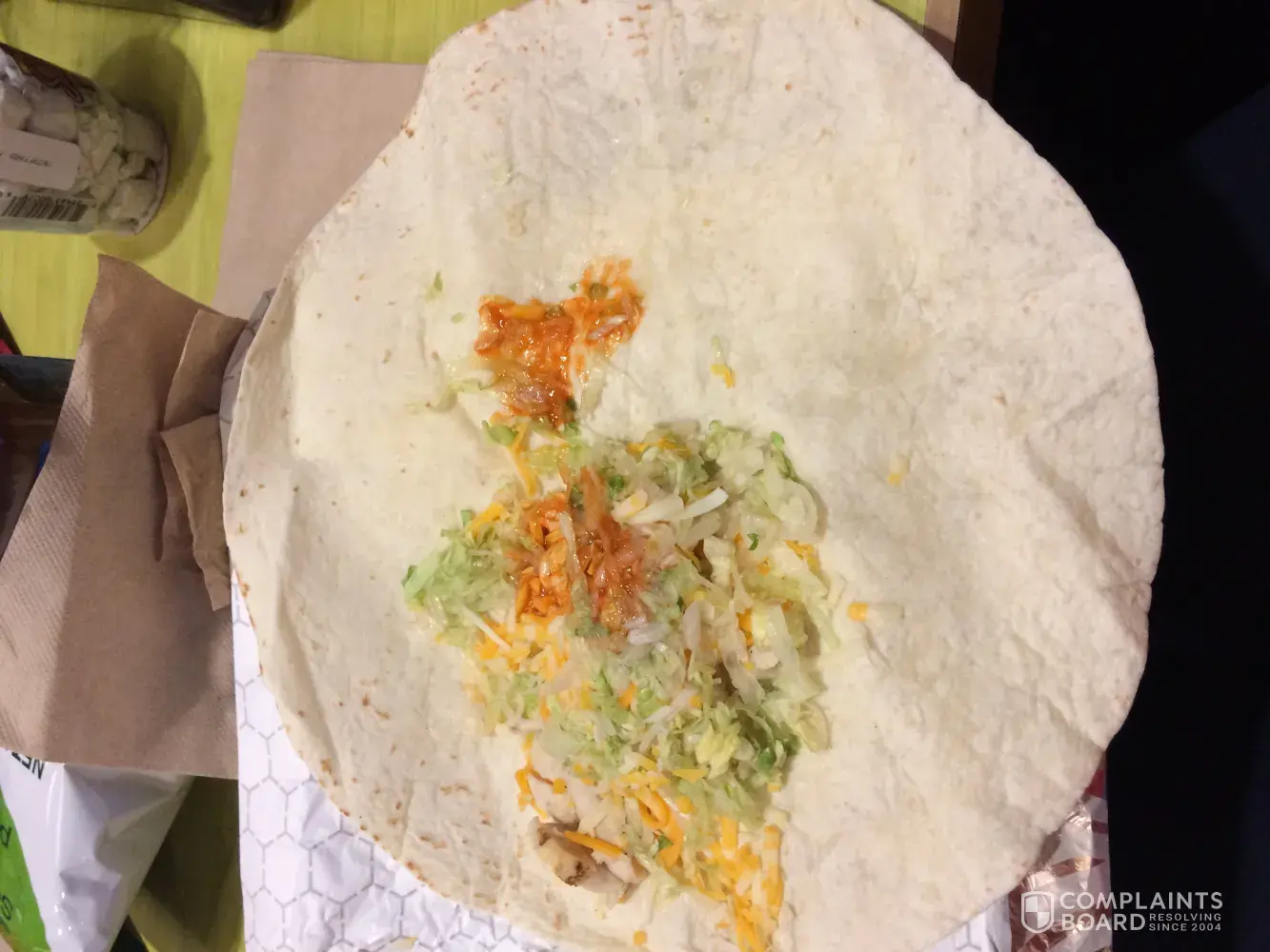 I ordered a wrap last night at my local Sheetz store and I was less than impressed. I have a picture of it. There was hardly anything in it. It was to be a buffalo chicken wrap and you can see by the picture there was only a drop of buffalo sauce. There was hardly any meat. It cost me almost $7 and I had ordered 3 of them for my family. My bill came to $40 something. This was the worst meal I have ever gotten there.