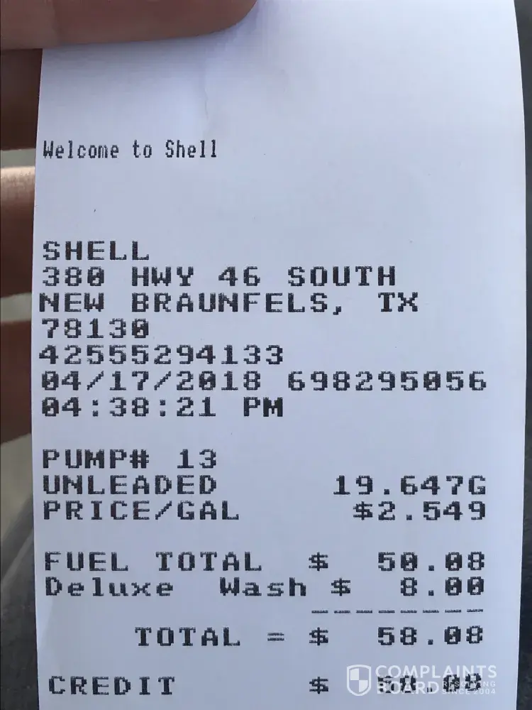 Shell cash register 4/20/2018 @ 9:50 pm mount standard time.