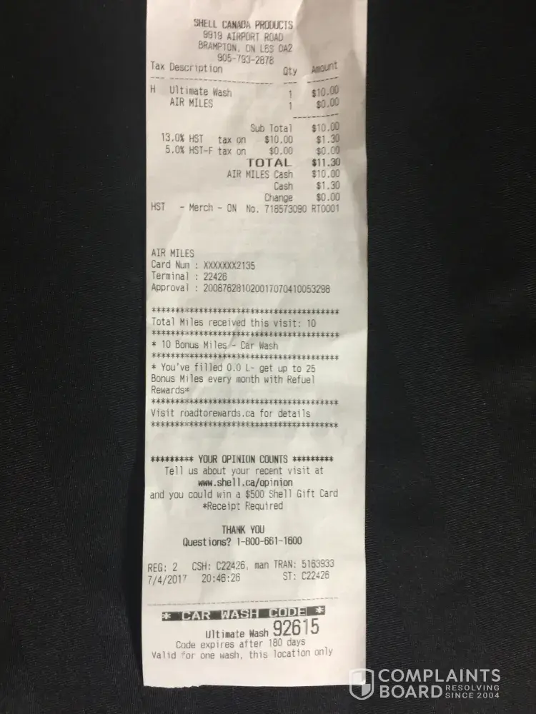 Shell not getting my 10 cents a gallon for car wash and other problems
