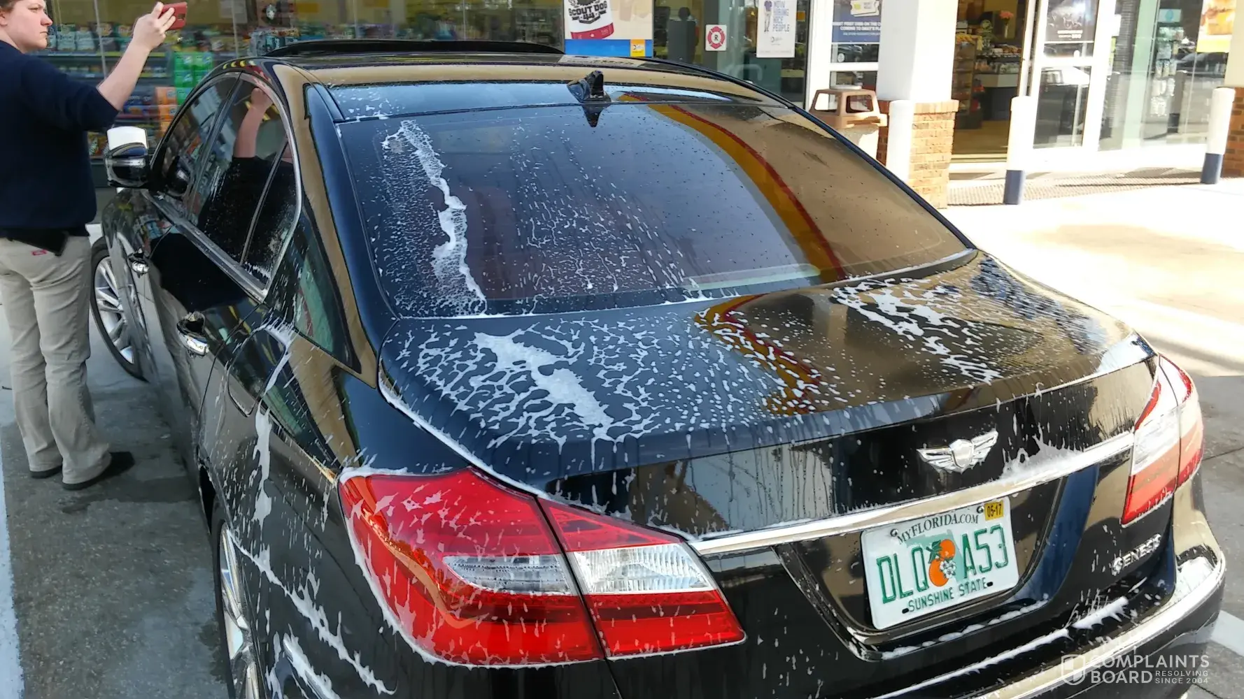 I attempted to visit a Shell Gas Station on the Southside of Jacksonville Florida. I entered the car wash to get my Hyundai Genesis cleaned. I normally don't use the machine operated car washes but my car was covered with pollen. I noticed out my rear view mirror the machine was missing most of my car. I looked out the front through the windshield and noticed the dryer arm. It said proceed slowly and as I atempted going under the arm I heard a loud crack. I pulled my car to the side and saw dammage to my sunroof. My car was still covered with soap from the car wash. I proceeded to park and go inside to report what had happened. Several custoners going in and out the store saw my car with the soap & damage. One customer walked over and gave his info to me. He went on to say he witnessed some people working on the machine the day prior. I went to a Manager to file a property damage report. I was given a copy and advised it would be turned in to Shell Corporate Office. It has been 5 days now and not a word from Shell or anyone.