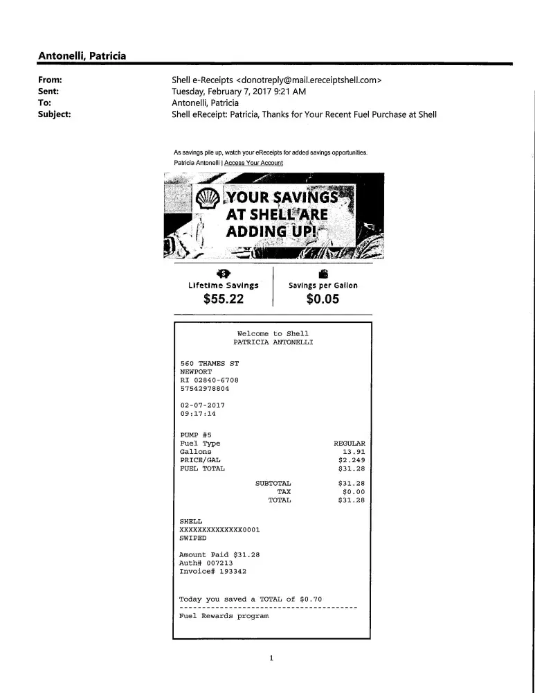 Receipts for gas purchases as Shell stations and at Seasons stores are being emails to [protected]@psh.com. That is the wrong email address. I have been taking steps to alert Shell, Shell credit cards and Fuel Rewards about my NEW email address ([protected]@gmail.com) since mid-December 2016 with no success. I have had numerous telephone calls with customer service people and supervisors from Fuel Rewards, Shell credit cards (I believe it is Citibank that manages the Shell credit card that I have) and from Shell Corporate offices. The people at Fuel Rewards say "it's not coming from us -- we have the correct email address ([protected]@gmail.com); the people at Shell Credit Cards (Citibank) say "it's not us -- we have the correct email address ([protected]@gmail.com), and the people at Corporate say "it's not us". I don't know where to turn. I have attached the receipt that was emailed this morning (2/7/17) to my OLD email address ([protected]@psh.com). As of 2-9-17, I will no longer be using [protected]@psh.com -- this is why I want Shell to stop sending my receipts to [protected]@psh.com. I want my receipts to go to [protected]@gmail.com If Shell can't take care of this (and I've been trying to change the email address since 12-16-16), I am going to stop using Shell for gas and for items at the Seasons store. I'm also going to stop using my Shell credit card. Check out my account -- I always pay my bill on time.