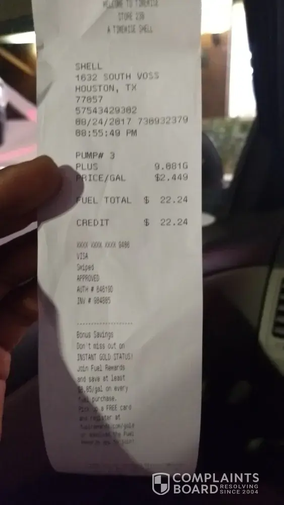 I don’t want to have to wait to receive my back for gas I didn’t even Get. It’s not right