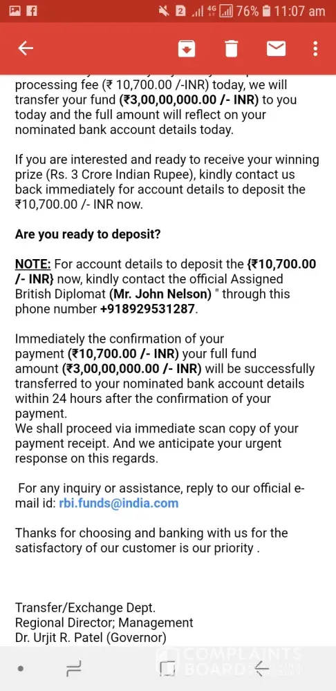 I'm Subhash P From India Karnataka Bangalore I'm winning Prize 3 Crore it's true r fack tel me plssssssssss he is asking 10, 700 to pay wat I do tel me