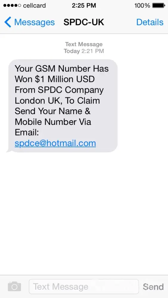 I have receive message from +[protected] that your mobile number has won you 500, 000pounds in 2013 shell (SPDC) INTERNATIONAL MOBILE DRAW LONDON, to clime your price send your details to" smukd@live.com my name is asad hussain email is asadhussain7@gmail.com, , [protected] [protected]