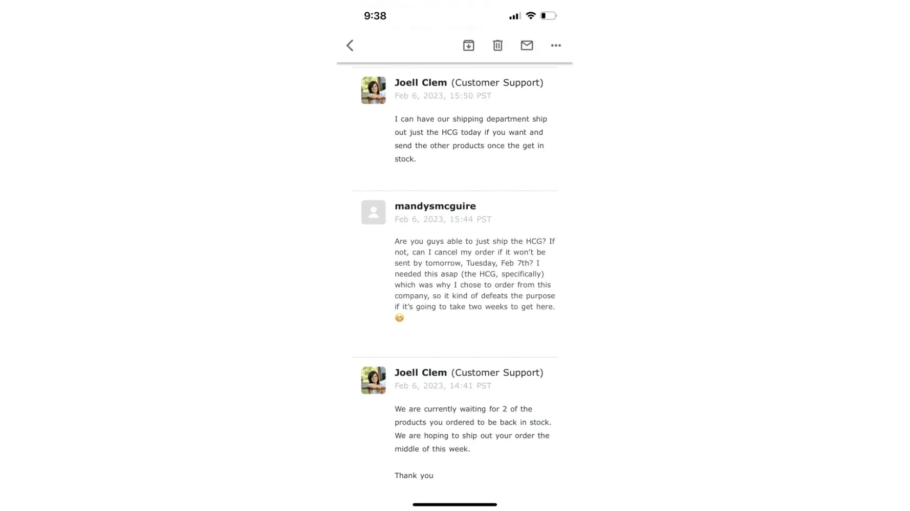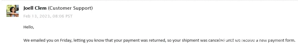 It looks like we have all had the same experience with this company. I ordered 21 days of the HCG drops on 2/6. I paid by ECheck because they said it would be shipped out the same day if I do. Ok, easy enough. The next day, I checked my bank, and the money had been debited as an ACH to Shipped Today in ACH. That's kind of weird, but ok. The company is supposed to be called Official HCG Diet Plan. I wait a couple days and by the 9th, I had not received an email stating my drops had been shipped. I emailed them and requested that they send them, and I even sent a snip it to show them the amount being debited out of my bank account. I did not receive a response. I emailed again on 2/10. This time I got a response from customer support - Joell Clem. She said verification can take 72 business hours, and that my order is in the que to ship out that day. I just said thank you, and waited for my confirmation email. I did get the confirmation later that day. I thought awesome. The next day I checked the USPS Tracking and it said the shipping label had been cancelled the very same day - 2/10 which is a Friday. So I emailed them again on Monday 2/13, and showed them the snip it of the label being canceled, and asked why? The same customer service support said that they emailed me on Friday the 10th, and said that they were letting me know that my payment was returned, so my shipment was cancelled until they receive a new payment form. Ummm, NO! I checked my bank account again, and the charge was still there, and showed cleared. I sent her a snip it showing the money had cleared my account. In the mean time, I called my bank and explained the whole thing. They said the money had not been returned, and the charge had gone through. So there is defiantly something fishy with this company, and I truly believe they are scammers unfortunately. I filed a dispute with my bank, and they did pull the money back thank goodness!