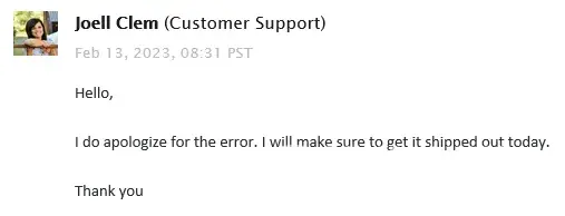 I ordered from this company and paid by check because, as it explains on their site, if you pay by check, they’ll process it ASAP. After 8 days with zero communication from them, aside from the email informing me that they received my payment, I contacted them. They told me that they had my main order but we’re still waiting on two other products I ordered so they would hopefully get them, and then be able to ship them, within a few days. I asked them if they could AT LEAST ship my main item and they said they would do it that same day. Fast forward two days and they finally shipped the item. Via USPS so I guess that it will hopefully maybe be here in a couple of days. TWELVE days to get an item from “Shipped TODAY” is BS. I will never order from this company again.