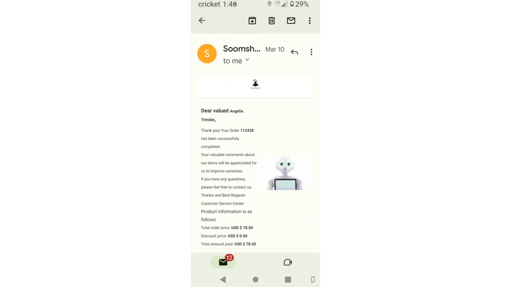 Desired outcome: i would appreciate a response or give me a refund