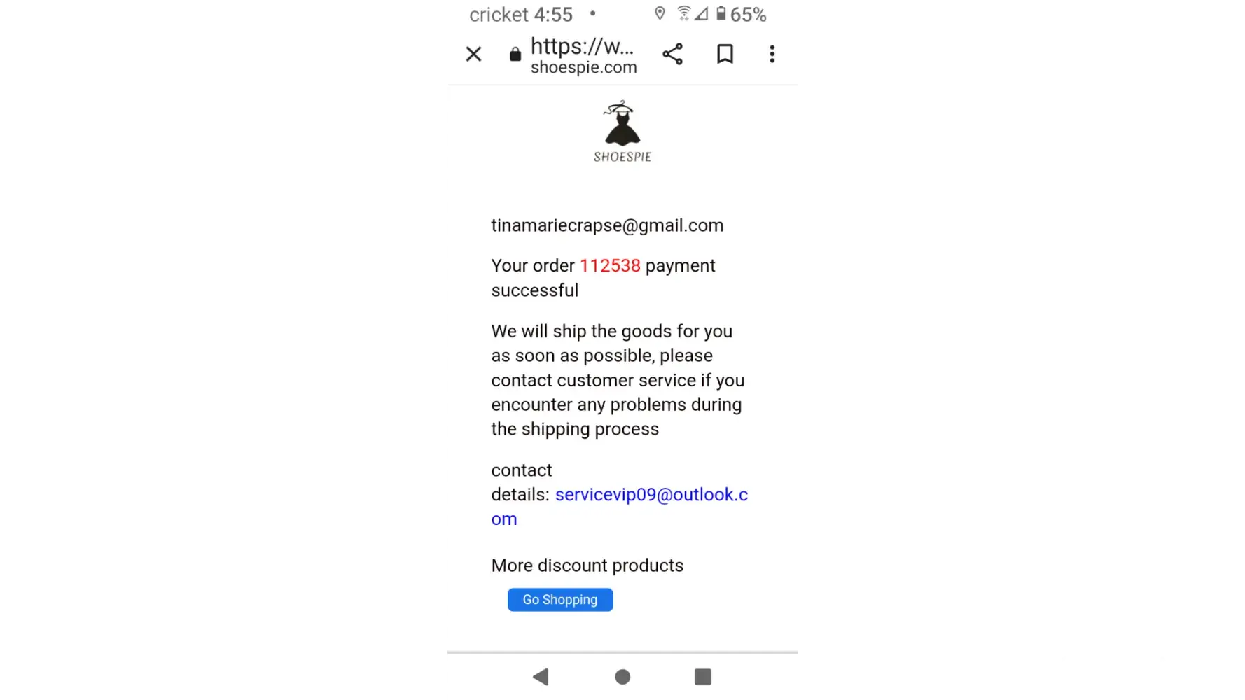 Please never shop at this website! shoespie.com