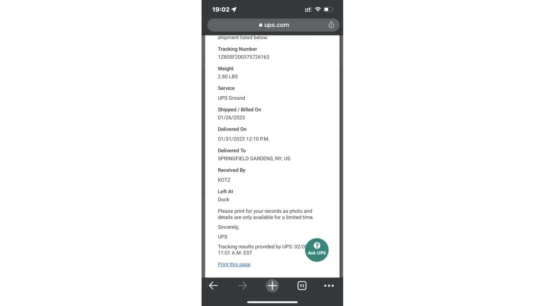 1ZY359820204711690 delivered 06/26/2023 at 10:58am received by Kotz