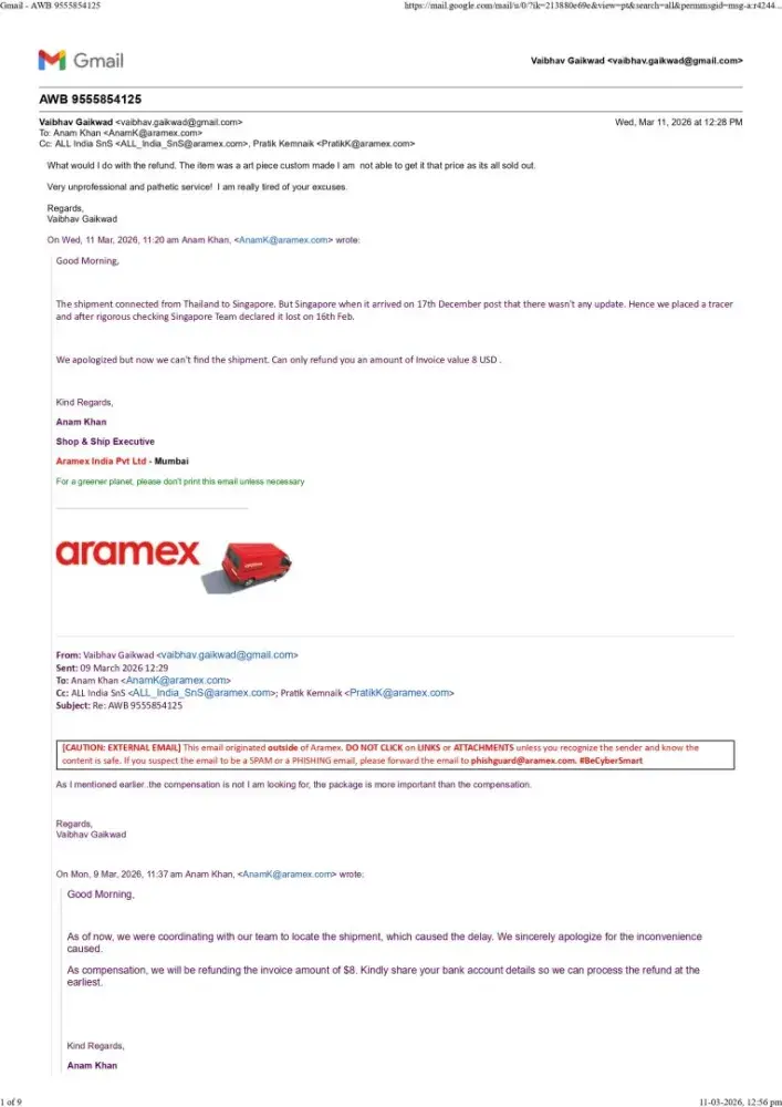 I am a long time customer of Aramex but this is not how companies should treat their customers!