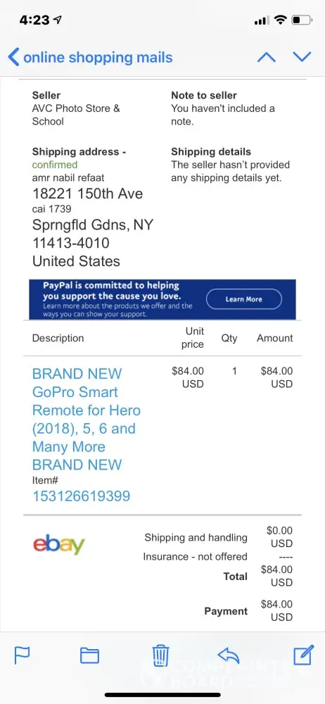 Kindly be Informed that the following purchase containing remote control for GoPro camera has been delivered six days ago but never been updated to my mailbox CAI 1739