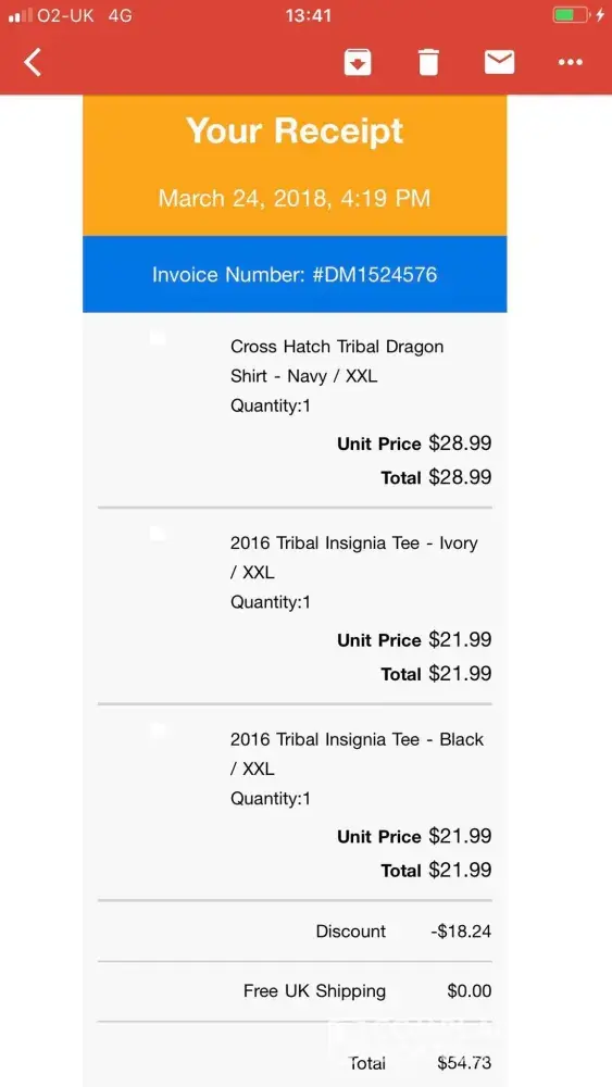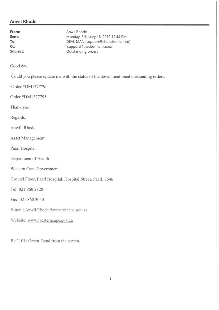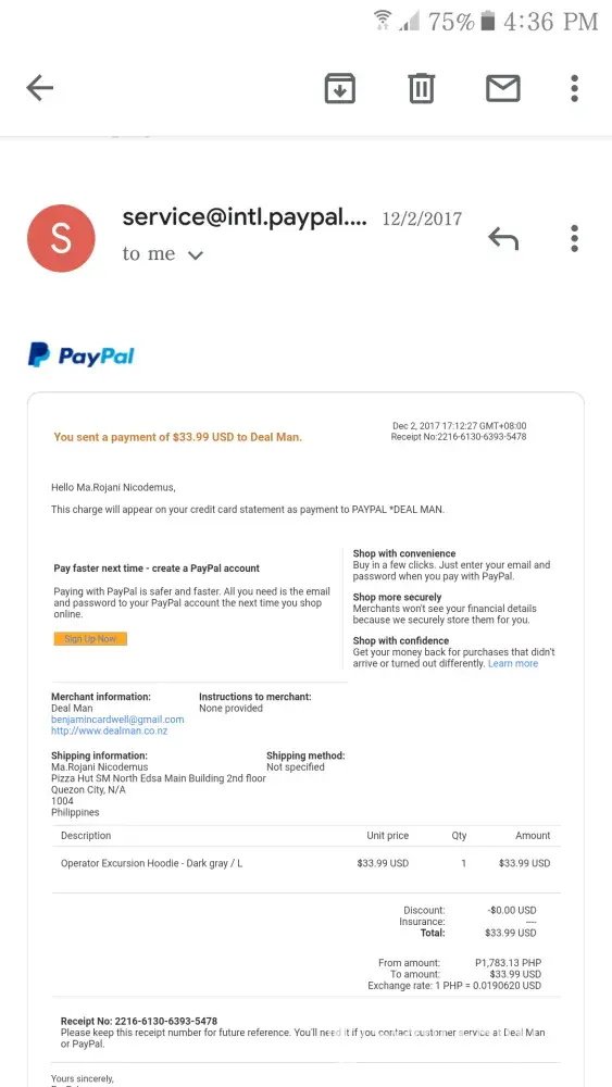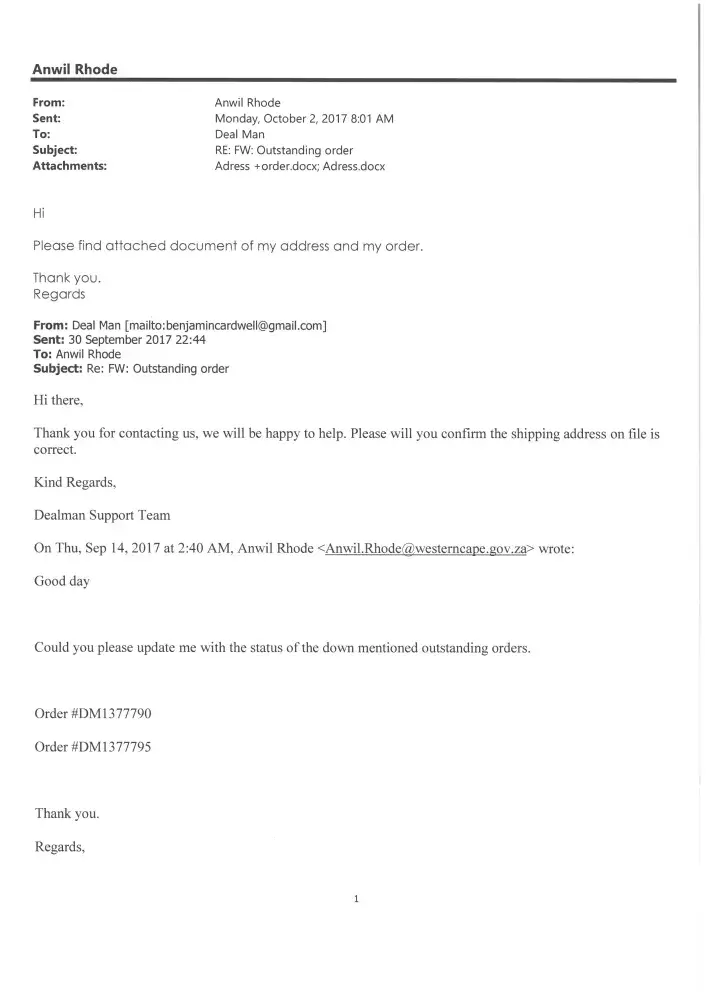 here's the email I receive from [protected]@shopdealman.co on the 17 May 2018