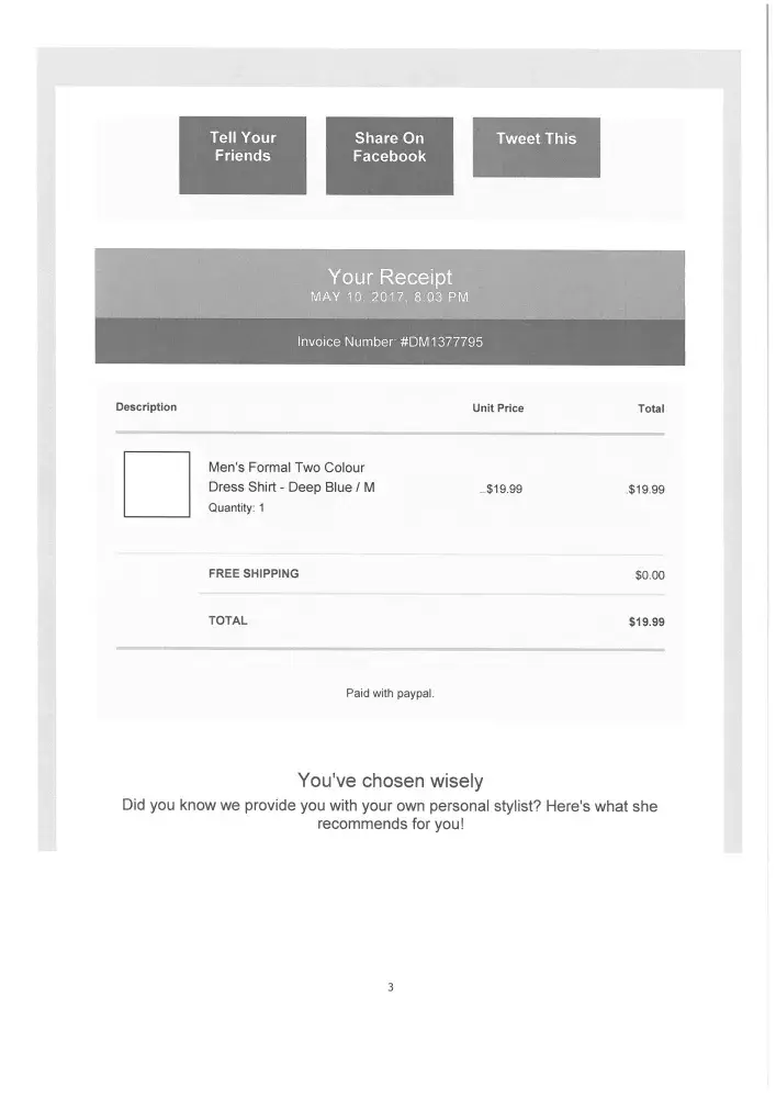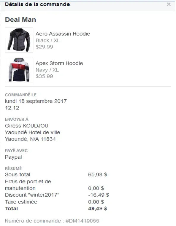I paid two items (sweater) online via Paypal with the Order Number #DM1419055 since 18/09/2017. But so far (4 years 06 months later), I did not receive the delivery.