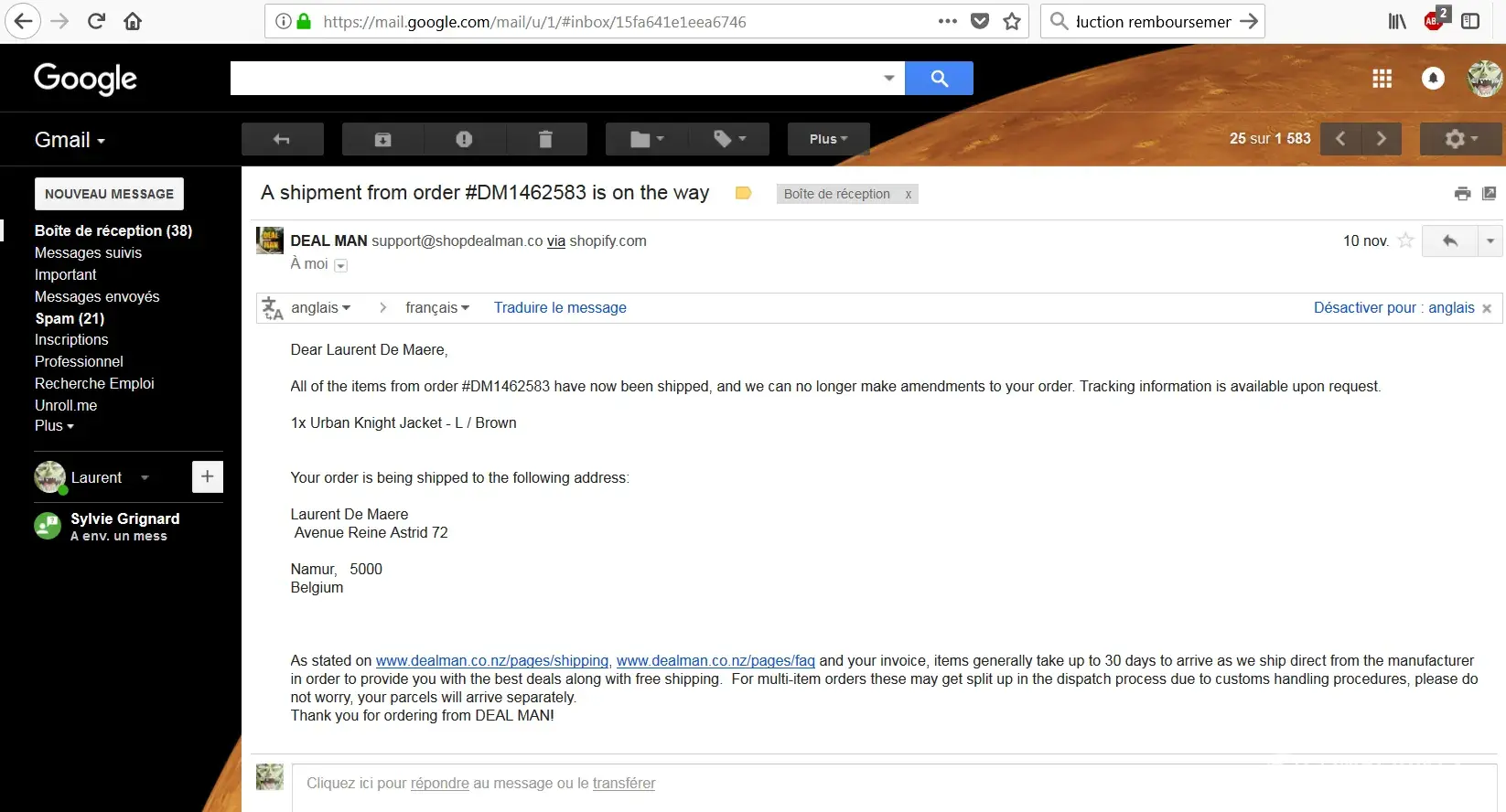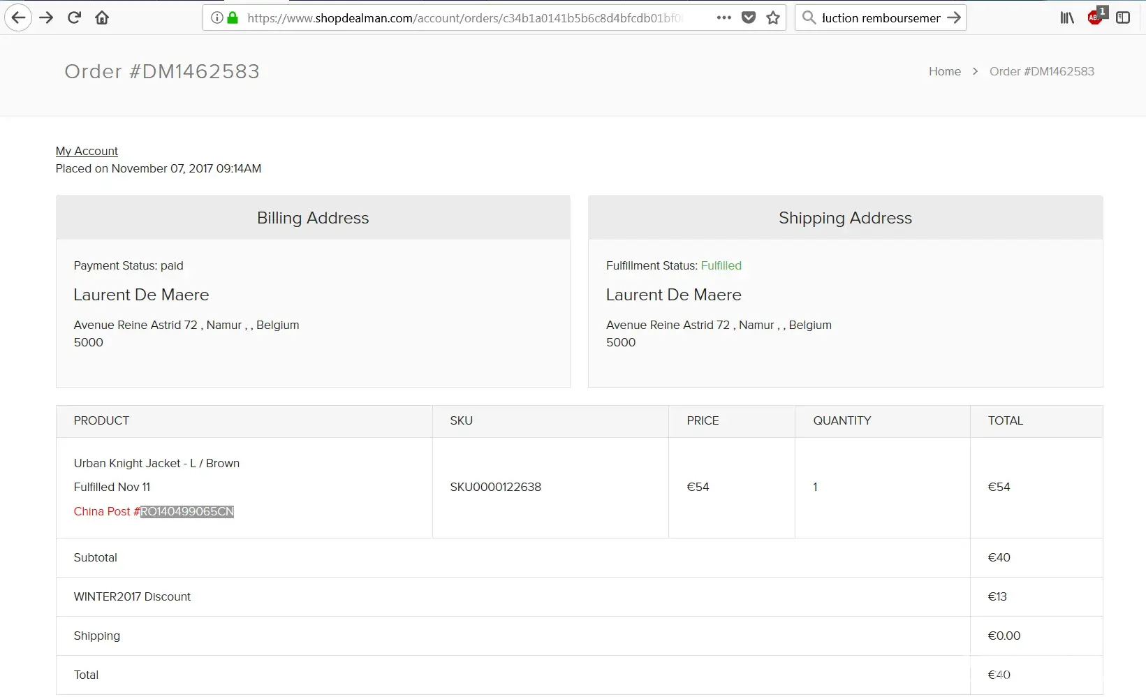 You can see on the 1st picture that my order is paid and should be shipped since the 10th november.