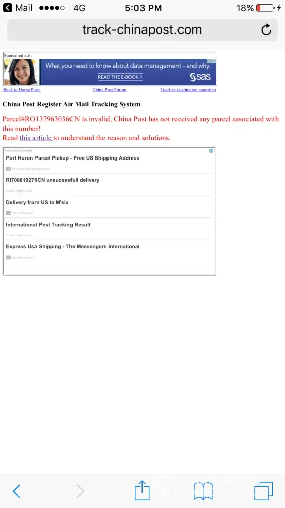 The third one is from the china-post website, and it said that the tracking number doesn't exist.