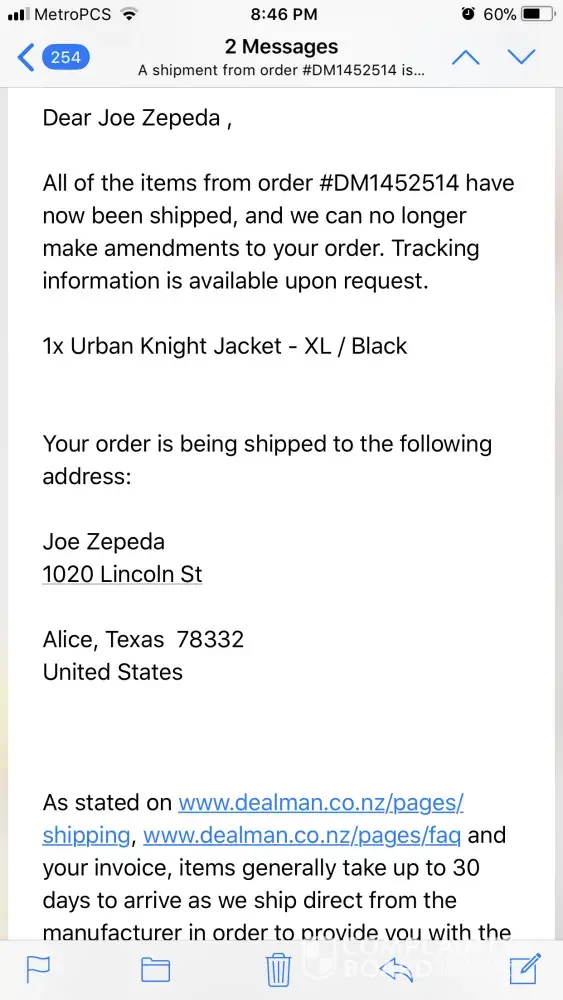 This email is to confirm your recent order. Please review your order details to ensure they are correct. Deal man cannot be responsible for any errors once your order is shipped.
