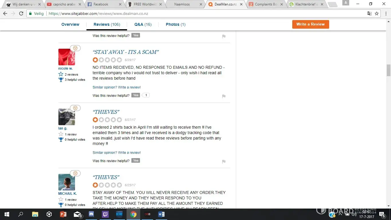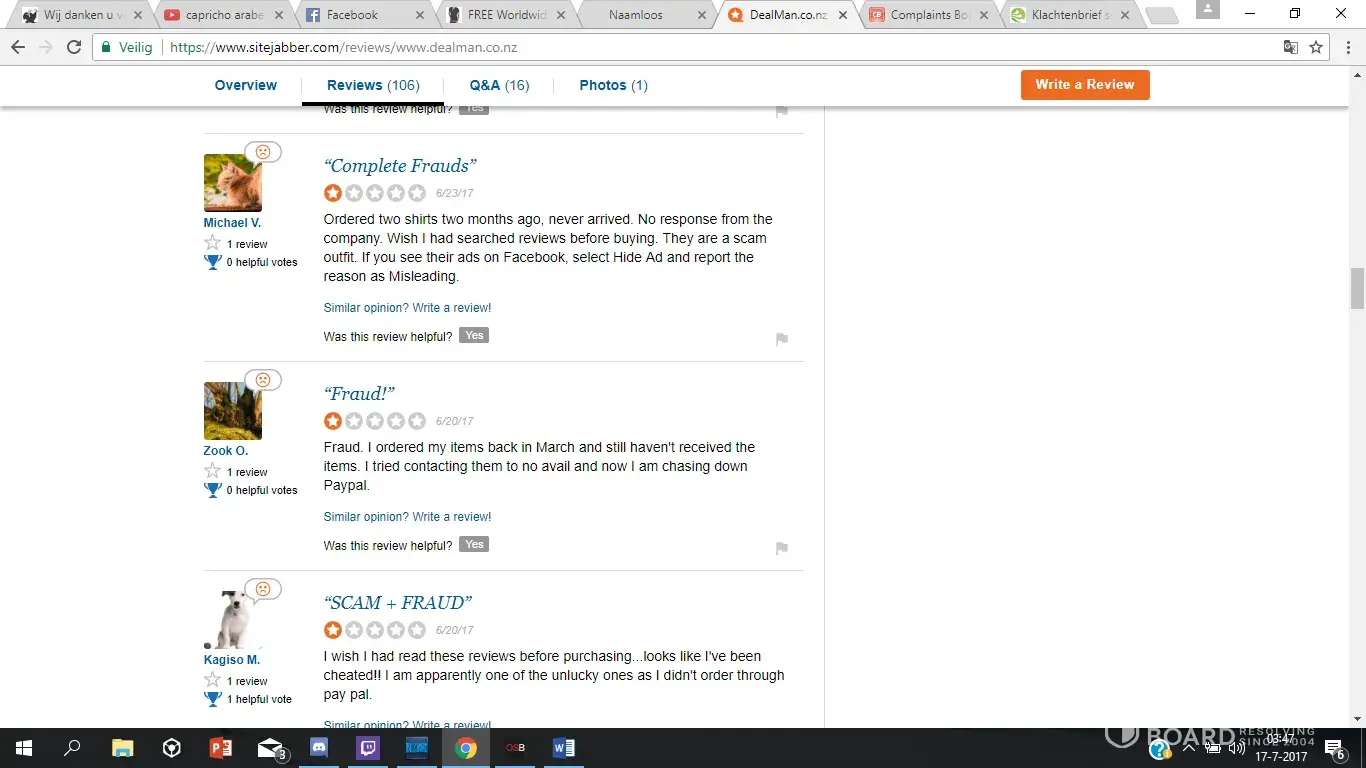 I placed an order with Dealman for a jacket, and paid on 14 April 2017 - order #DM1368492. To date I have not received it. The tracking number supplied by Dealman does not exist, and is from China.