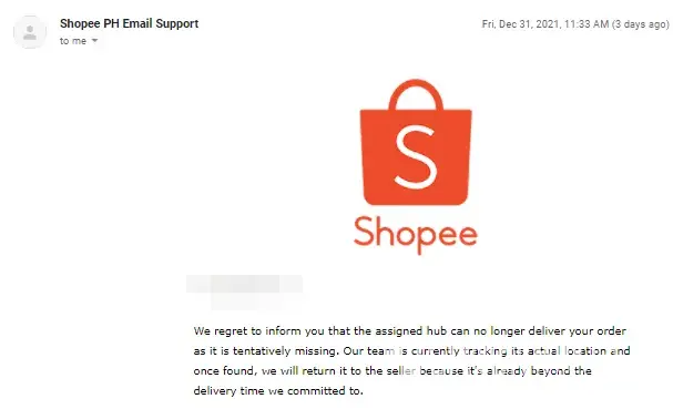 I have ordered this item last 4th December 2021 and this should be delivered by 18th December 2021. Unfortunately, we have been hit by Typhoon Rai on 17th December 2021. Before this happens, my parcel was stacked on their station for more than 5 days with no updates. So I need to personally reach out to them asking for an update with 5 days on their station. It seems that I have reached out to their support 7 times but still keep on promising that they will expedite my parcel. Guess what it's now 3rd January 2022 and they tagged my item as MISSING? Really, seeing that this has been paid by Shopee Pay?.