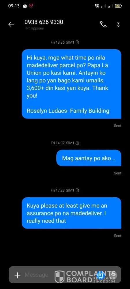 The rider did not deliver my Parcel. It said, "Parcel Out for Delivery" for two consecutive days pero nothing. And then when I checked, it was deemed delivery unsuccessful. I tried to call the rider for countless times pero he kept denying the calls. I waited from 31 in the morning until 2 of January. Pero nothing. This is the second time this has happened. I even cancelled my La Union trip with the Family bc I didn't want my parcel be returned to the seller. Php3, 611.00 is not a joke.