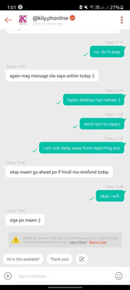 I need Shopee to cover my loss and refund the money asap. I'm going to post everything on every media platform now if I do not get my money back.