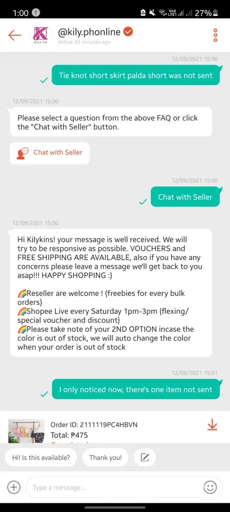 Shopee Shopee Fraud Seller Case no. [protected]/[protected]- Order ID 211211T8KD4149