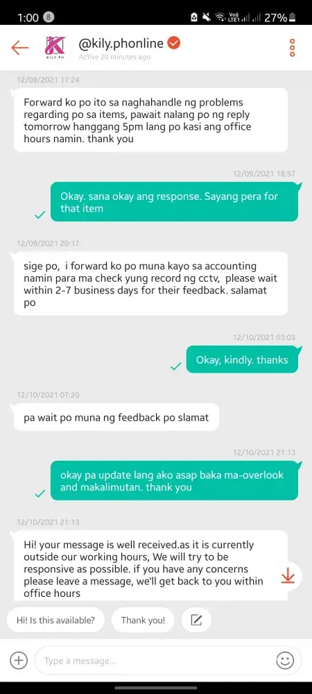 - I chatted with them the whole time from dec 9 up to now, january 3, 2022, and i'm always told to wait since their accounting is unavailable, they're not in office hours. they have so much alibis and they keep telling me to wait for someone from their side to message me. guess what, it's already a month!