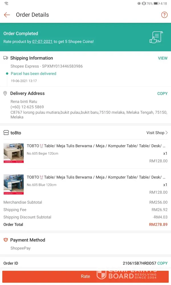 Well, I placed the order on 23rd June and Shopee courier picked it up on 24th. The delivery status not updated since then. It supposed to be delivered on 29th which is of course not happening. I tried to call support few times, but the only answer I got is " they are trying to deliver the parcel".