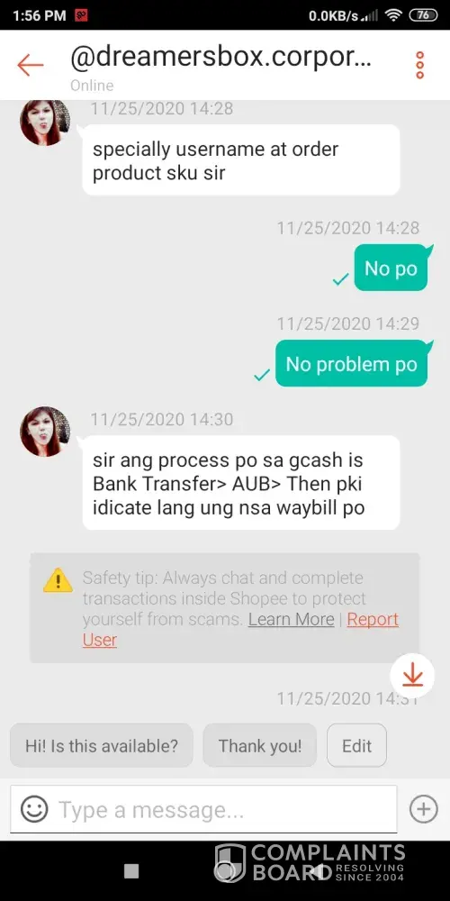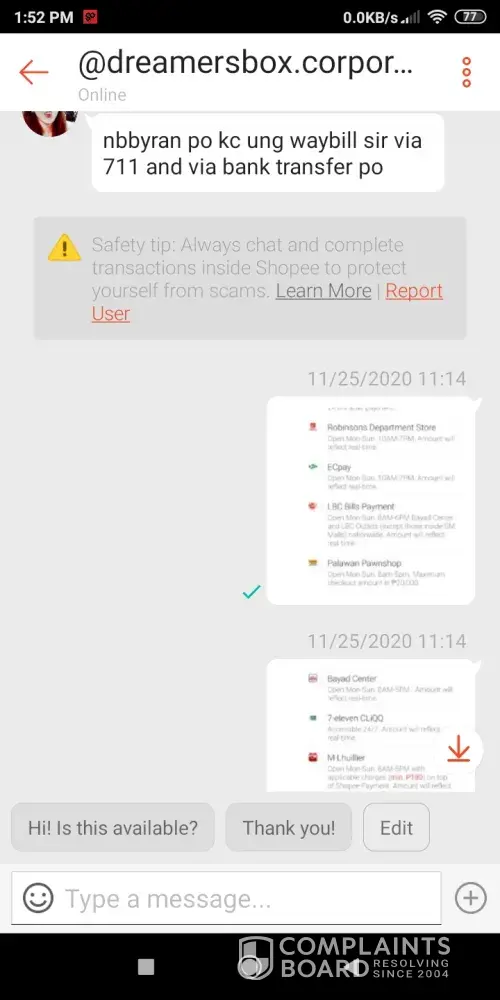 From Nov 26th and still ongoing I have asking for Shopee.ph to validate an order and account number but the escalation team that was assigned to my case never ever contacted me and give the pertinent info i needed for Gcash to reverse the payment for the grace period they had in place. because of their lapse transaction completed thus money got transferred to scammer personal account.