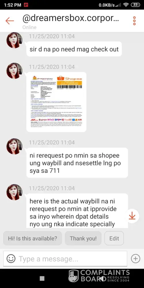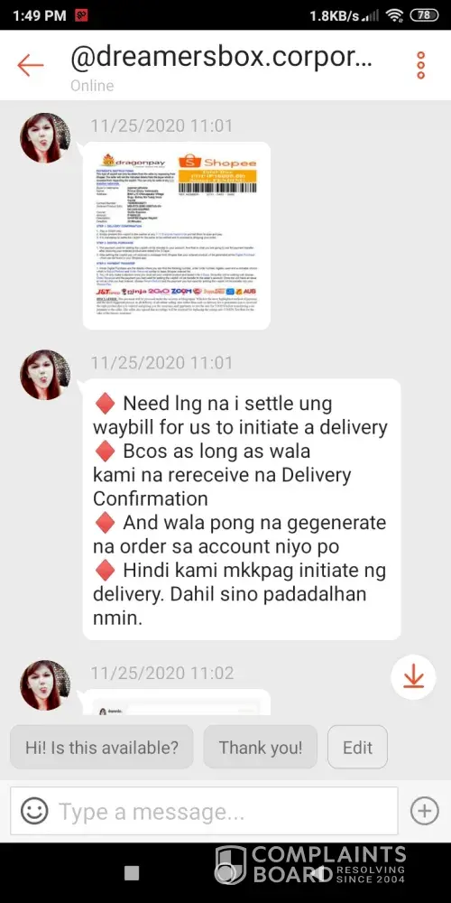 I ordered on shopee dated Nov 15, item from China. The item arrived in philippines on Nov 23, on the following day Nov 24 when I check the status it says item is on the way to deliver by the courier at 1pm. Then I waited all day for the courier to came. Then at 7pm to my surprise when I check the status of my delivery there is saying that parcel will return to the sorting hub because it was rejected by the user. I immediately contacted shopee agent to report what happened. Why the driver reported like that. Then agent told me they will do an action and wait for the item it will be delivered within 24hrs. Then the following day, Nov 25 around 8pm no courier came. I contacted again shopee and reported it again, then shopee agent assured me that my parcel will be delivered the following day so stop worrying. And then today, when I checked the status it was returning to the seller! I was like what the heck, come on shopee! 2 consecutive days I've been reporting this matter and then nothing happened? I contacted agent again and rely everything again and again then agent told me sorry because its already returned to seller, all they can do is to file a report against this driver. Oh really? Just now agent told me they will file a report.. Wow! Pls somebody help me to finally give this driver his award for being beast!