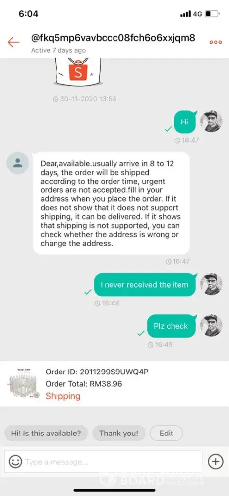 I brought the item with this seller on 17th Nov then no response no ship item then on 19th again I contact seller again no respond... Thus I make an cancellation since is not ship out and no response.. Cause I dun wan keep extend the guarantee by shoppee...