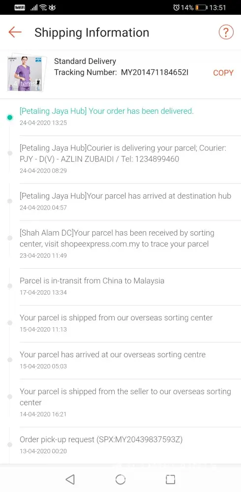 I'm very disappointed for the delivery service. Should be door to door service but driver said he having a lot of customers and a lots of vehicles. He can't pull over the van to do delivery. Maybe the news about MCO from PM is fake until there are plenty of vehicles out there. Literally said he is in puasa. Finally the parcel is left near the staircase (my unit is first floor).