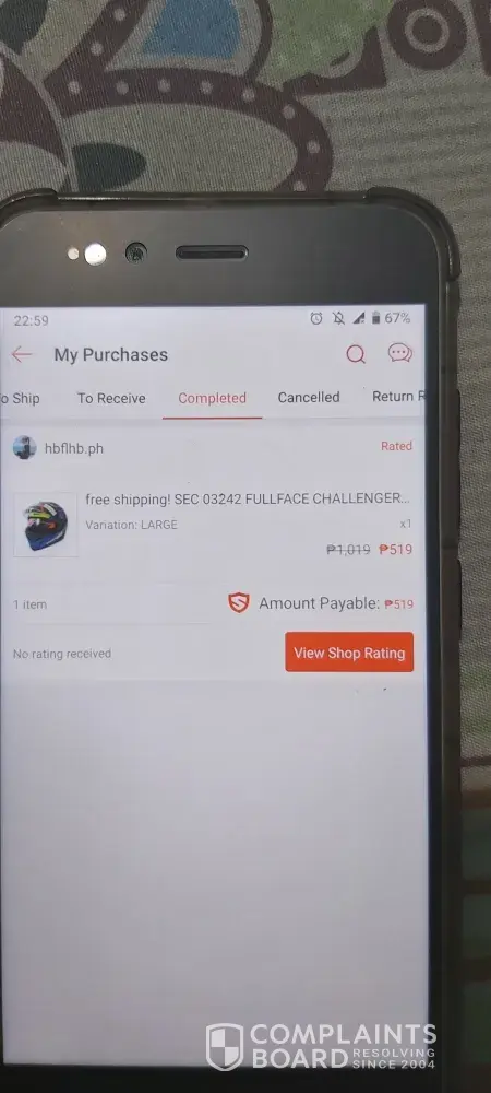 Seller noticed that the item is already completed but i do not received any helmet. Seller also indicated that they are not supporting COD but payment thru bayad center, banks, 7-eleven, etc. I paid at 7-eleven expecting for the helmet to be processed but until now i do not receive any updates. I hope it will get corresponding action. Im very disappointed shoppee because it was my first time to order in your online shop but it end up with this scam. Im just asking for the refund of my payment.