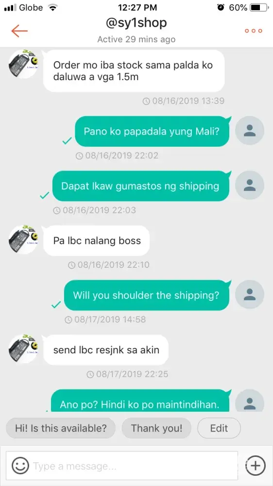 Nagtatanong if magkano yung product tapos he wants to ask us for another payment at iba pa yung delivery fee tapos COD yung mode of payment tapos nagalit siya malapit pa nga sinagasaan yung kotse namin naka park. Sana next time wag ganun yung mga delivery man. :( Nanloloko na :( alam namin magkano babayaran namin.