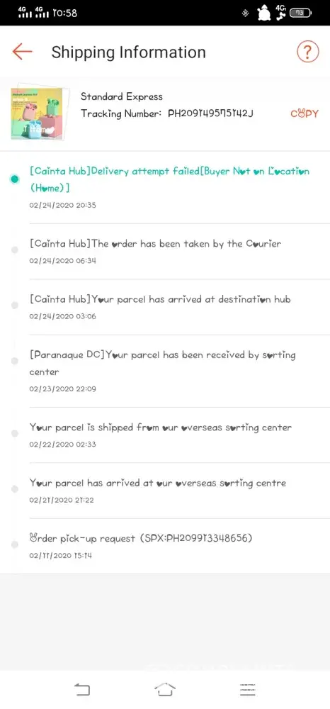 I didn't get my order today, march 13, 2020. The courier was still asking my address, i've told him where the exact place is, but still kept on asking, then he just left without stopping by the place.