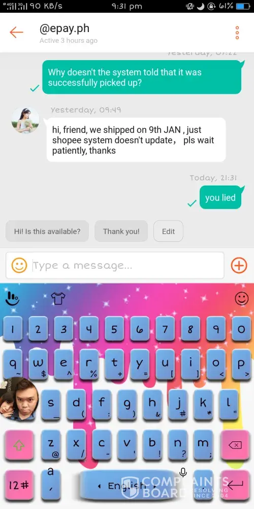 There are a ton of complaints from other people about the seller, courier, and Shopee. Therefore I'm not planning to explain it again even though I almost face it all. However, I want to write more about the Shopee Dispute Team. The dispute team has no problem-solving skill. They provide many untrue excuses and very good at shirk responsibility even though I provide quite many proofs on my issue. It's been a month and there is no resolution yet they self claim the issue has resolved. There is nothing else I could do but just provide my rating and explanation at many websites. I also plan to file a complaint at the National Consumer Complaints Centre.