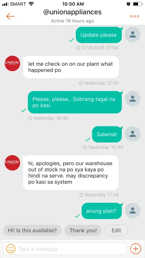 Bakit napakatagal niyo naman ideliver ang order namin sa shopee? It took 3weeks until now wala pa din ? kung alam ko lang na ganyan kayo mag process sana pala hindi nako umorder. Kaya nga kami nag order sa online shop kasi we all thought na walang hassle! and now here it is baka akalain ng shopee nagawa lang kami ng way para makarefund grabi naman. may contact number naman kami sana lang.mag explain kayo thankyou and Godblessed