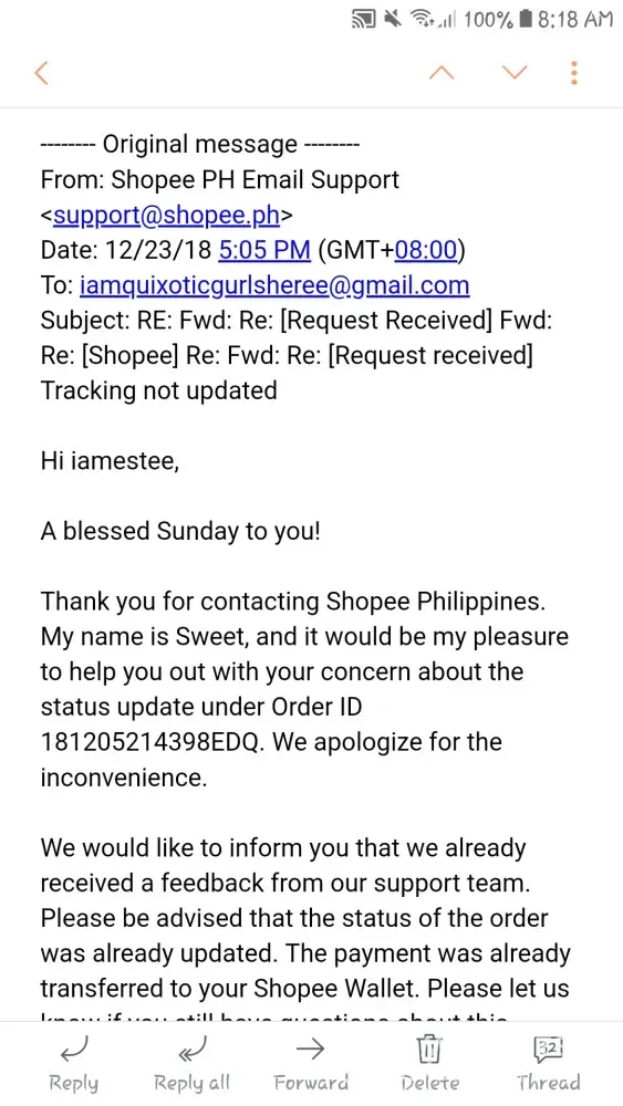 Shopee item that I didn't receive