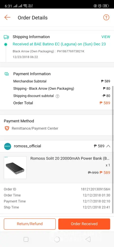 Dec 19 2018 5:03 pm. tumtwag c rider sken at ngttx. Nksilent phone ko. Pero 5:13 pm. Tumtwag ako sknya. Umwi ppa nga ko galing trbho. kc walking dstance lng nmn smen work ko. Pg uwi ko ng bhay wala na ko nadtnan na dlvery. Knulit ko ng knulit twagan ung rider hnggng pg sagot nsa oliVeros na dw sya. Sabi ko "kuya baka pwdw nmn bumalik ka kasi malapit ka pa naman dto. ang tgal ko na kasi inaantay yang dlvery na yan almost 20 weeks na" sagot nya saken hnd na dw sya mkkblik kc pbaesa nova na dw sya sab ko nmn tamang tama my daan yan dto samen pplbas ng baesa. Hnd n dw sya mkkblik. Pngbgyan ko. Tpos bngay ko pa number ko na kuya bukas alam ko my ddting pkong dlver. Bka pwdw mo na yan isabay. Sabi hhnappin nya dw mgddlver sken pra pgisahin nlng item ko. Dec 20 2018 ngaantay ako ng dlver dko na nga snslent phone ko. Kht nrrnig ng boss ko. Walang dumating na dlvery. n shoppee n ggmtin ko dpat ngyong pasko kasi dmit un. Hnggng sa nkipgchat nako sa seller. Sabi pablik na dw ng rizal ung inorder ko. Na wala akong kaalam alam na hnd ko na pala marrcieved ung item na mtgal ko ng inaantay. Panu po kya un dsddo pa nmn ako makuuha ko na ung mga inorder ko kc ngtiis akong d bmli ng bgongn dmit sa mall kc nga expected ko my mrrecieved ako galing sa shoppee pero wala na pala. thankyou. sana po mgwan ng actions