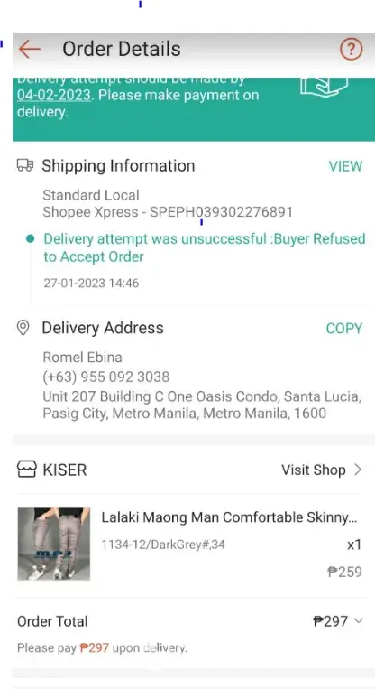 In November of last year, we suffered a death in our immediate family. At that time there were 3 orders that were yet to be delivered via Shopee, all of which were ordered, as we have done years, to be COD orders. The deliveries began arriving the day after the aforementioned death and the person that responded to the delivery attempt, told the delivery agent that to the best of his knowledge the order had been cancelled. He did not embellish that the cancellation was due to the death. This was repeated on the other two deliveres which arrived within days of the first attempted delivery.