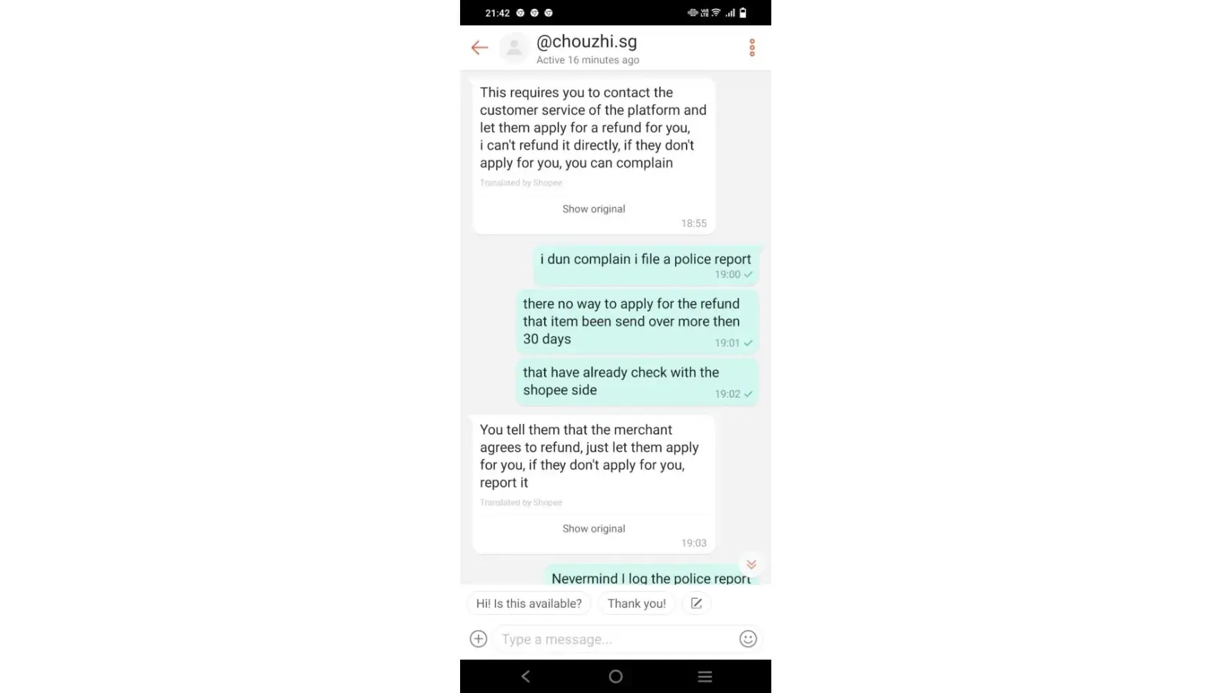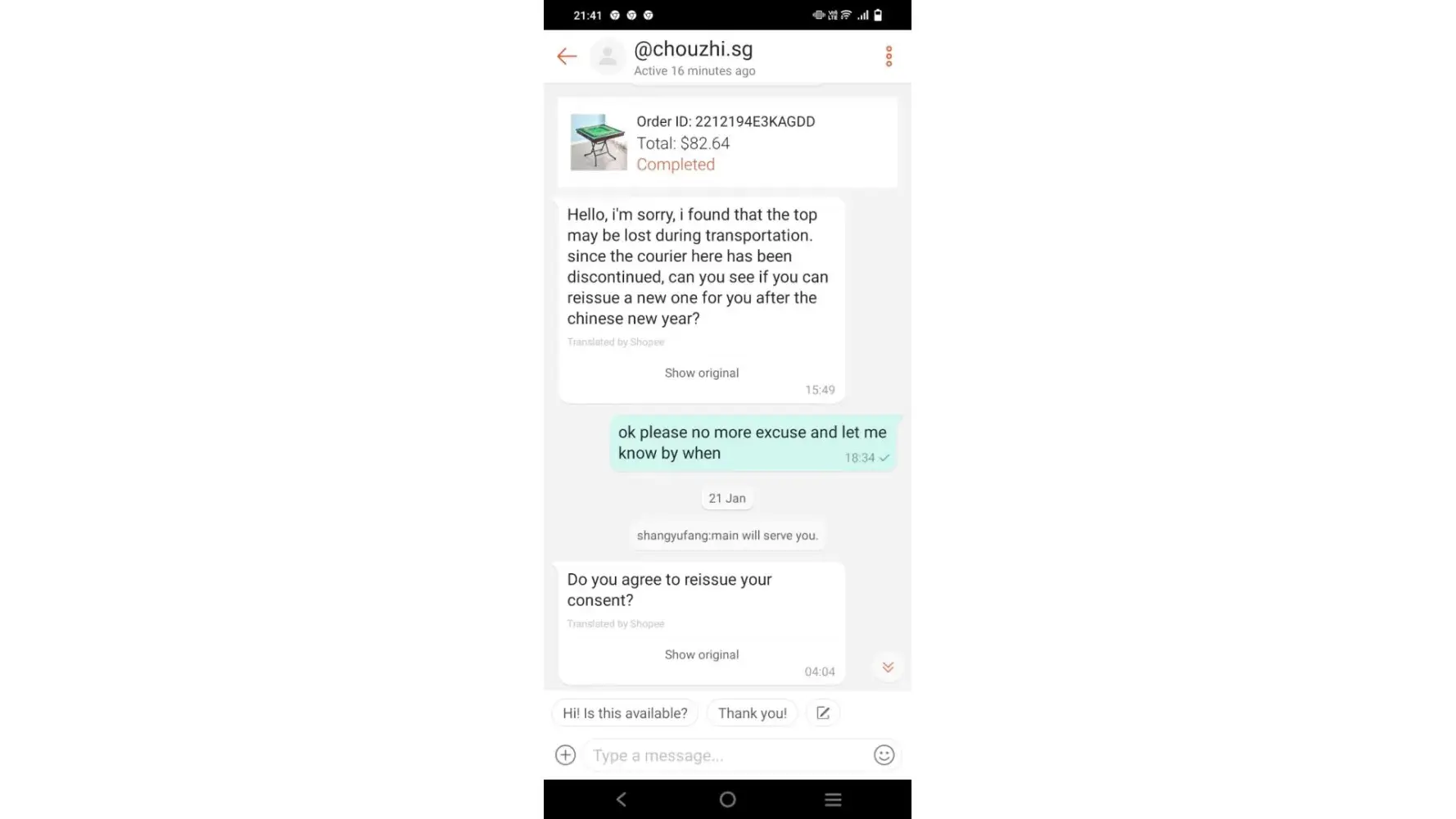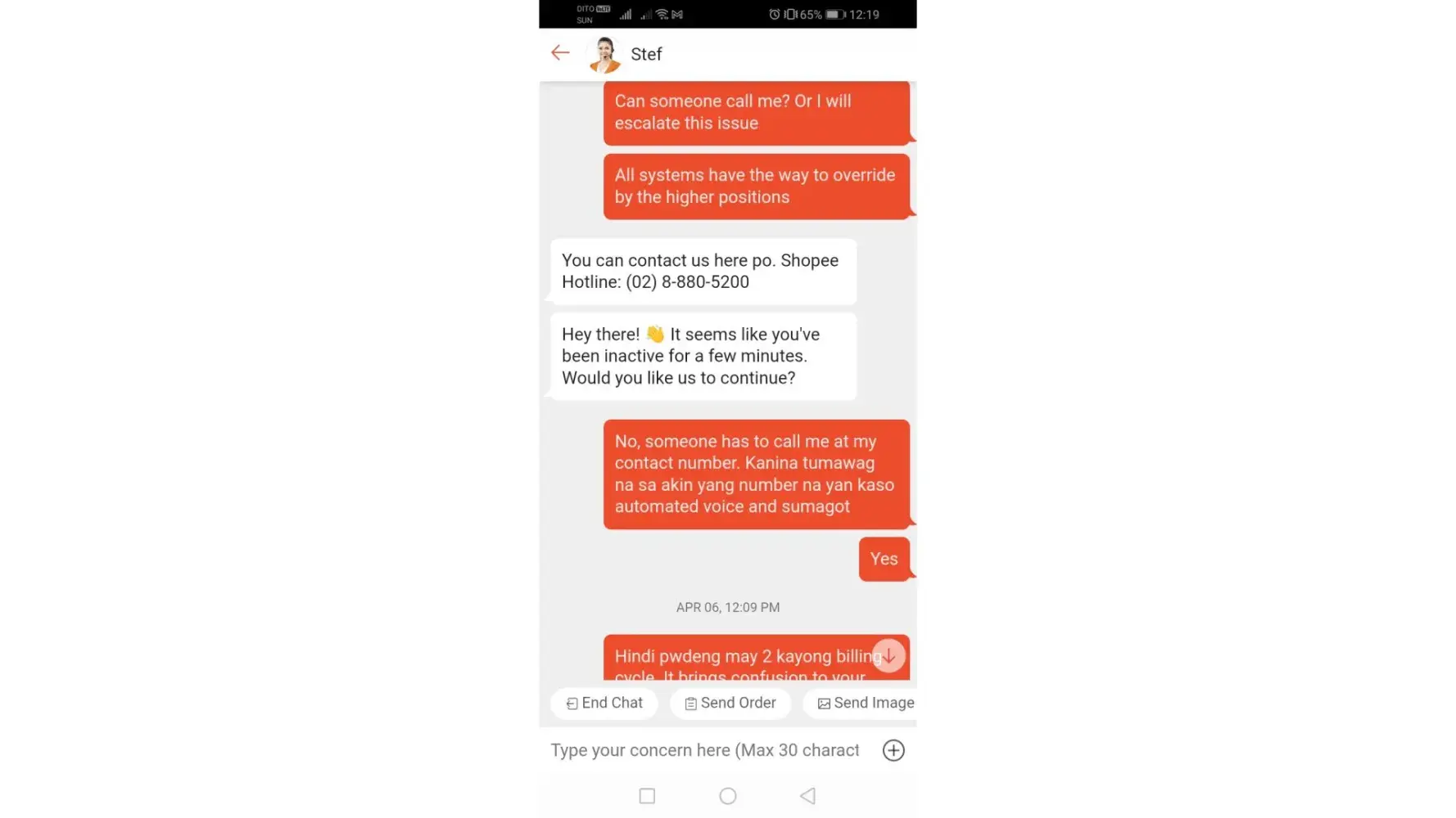 Thank you for your immediate attention to this matter and again, I await to hear from you. Hopefully your reply will allow us to again order through Shopee.