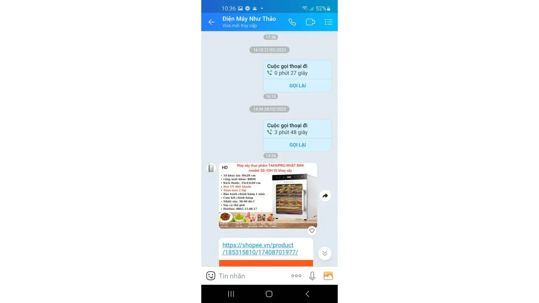 When I originally saw the advert the advert showed a picture of a dehydrator, videos of a dehydrator and a title in bold letters stating that it was a dehydrator. So when i placed my order there was only a dehydrator listed in the photos, video and title, there was no option to select a different product nor any pictures relating to the wrong product i received. Once the order was placed and I agreed to purchase I received the confirmation (See attached picture 1) Please notice on this picture that there is no option to choose between products! I was absent for delivery so my wife took the package in. On returning I noticed that the item was very small and once I opened it I realised I had been sent the wrong item. My wife is Vietnamese so she rang the shop immediately and spoke to a lady on the phone (I have phone records showing the calls took place). The woman on the phone was very nice and said that they would send out the correct item the following week and we could simply swap it with the delivery driver. That was on friday, so on monday we rang for an update and the lady said not to worry, it would be delivered this week. On wednesday we rang again and again the lady said not to worry it was on its way. On friday afternoon the item had still not arrived so we rang again, this time the woman was very rude and stated that it was our fault and that she isn't sending anything and she never said she was sending anything! (I have this information on text messages attached for you). The conversation broke down at this point, the lady said that we chose the wrong item, so I checked. The advert had been changed (see picture 2 and compare with picture 1. Picture two now shows a different picture and there is now the option of different variations), there was now an extra picture and a drop down menu for two items! Clearly you can see that after i placed the order for a dehydrator the seller accepted the money and then added variations to the advert! A classic scam! Eventually after lots of correspondence the lady agreed on a refund at our expense, I agreed this as I wanted to get this over with. So she told us to send the item back for COD. So we did this at our expense, after a week we checked with the post office and they confirmed that the item had been refused. I contacted the shop and the lady said I was lying and that her warehouse worker had taken money and given it to the driver. I explained this can not be true as I have the package in my hands. She refused this (despite being sent photos)! (The records of this are all on Shopee Chat. She then told me after lots of conversation that her warehouse worker had left the company. Then the warehouse worker was sick. Eventually things got heated and I informed them that I will call the police. At this point they blocked me on Shopee.