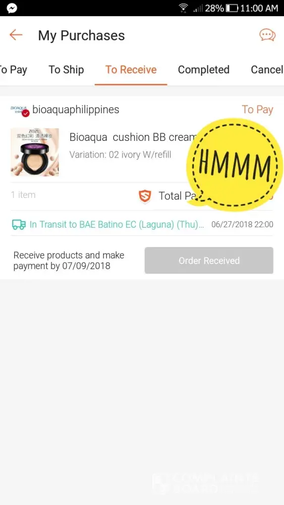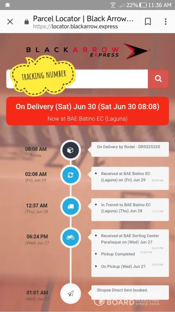 I placed an order on shopee on a make up item at 12:01 am wed jun 27 but there were some problem regarding the item but was resolved by the owner and shopee. Then the item was approved by 1:01 am on the same exact day the parcel was on pick up by 10:02 am then picked up by the courier from the seller by 6:09 pm and recieved at the parañaque sorting center at 6:24 pm. Then the next day thu jun 28 12:37am it was on its way to another hub located in laguna. Then was recieved at the hub by 2:08 am the next day friday. Then today saturday the parcel was scheduled to be delivered so i stayed at our house waiting for it to come but then evening came and no delivery man came to the house. And when i checked the status it is stated the I WAS NOT AVAILABLE. meaning i wasnt present when he came. I waited all week for this and no one came and to make matters worse they update the status to CONSIGNEE NOT AVAILABLE. For years that i have been ordering online this is the first time this happened to me. But it was my first time trying this courier and i could swear this would be the last. I wont order anymore from shopee. After this gets fixed. Im so freaking mad they dont even bother to inform you through anymeans of communication. I added screenshots for evidence. 😂 never knew it would come handy.