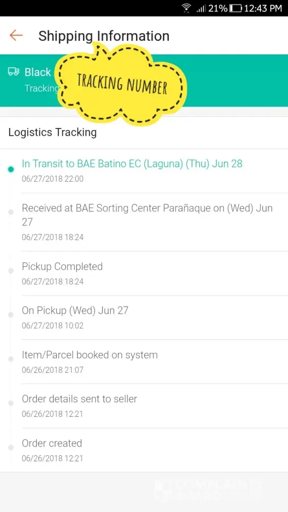 seller: On process at BAE Sorting Center Parañaque07-[protected]:07