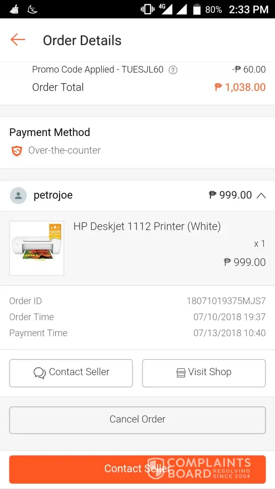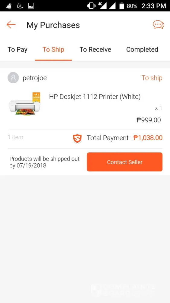 Last July 10, 2018, i purchased a printer online from the username Petrojoe and then I paid it last July 13, 2018, over the counter of Chinabank.