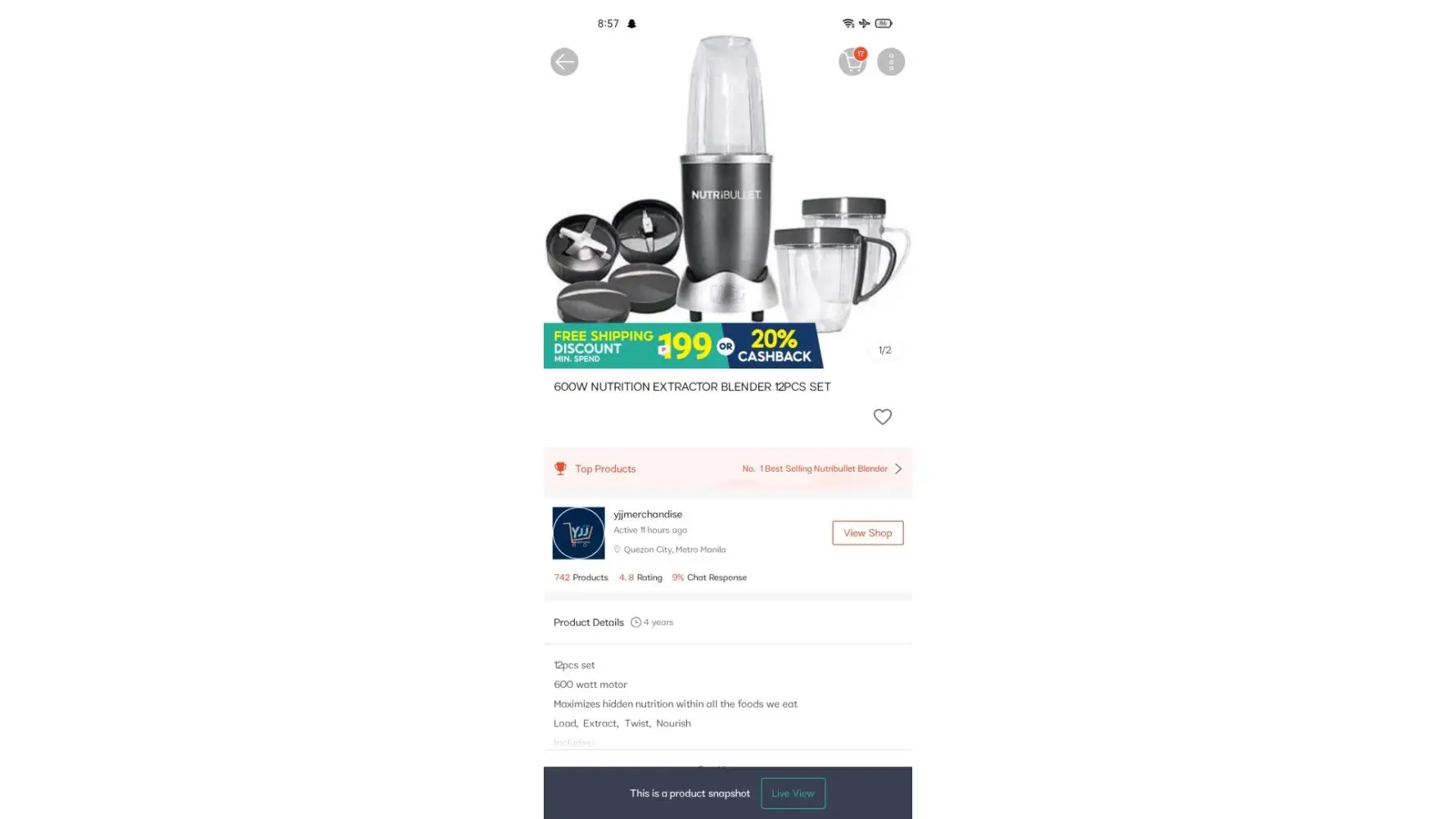 I ordered a 600W Nutrition Extractor Blender 12pcs set and was recieved on Sept. 18, 2022. Upon receiving I tried the item and it was not working. Then I complained a return and refund at the seller and Shopee. Then Shopee told me to return the faulty item to the seller and provided the address and contact name and number for the information on who to send/rerun the item. It was shipped out on Oct. 3, 2022. And Shopee told me to wait for 5-7 days for the refund for the item and the shipping fee that I have paid for returning the item. Thus, as of now Oct. 9, 2022 I have not received the refund nor a response from the seller and Shopee on an update for my request.