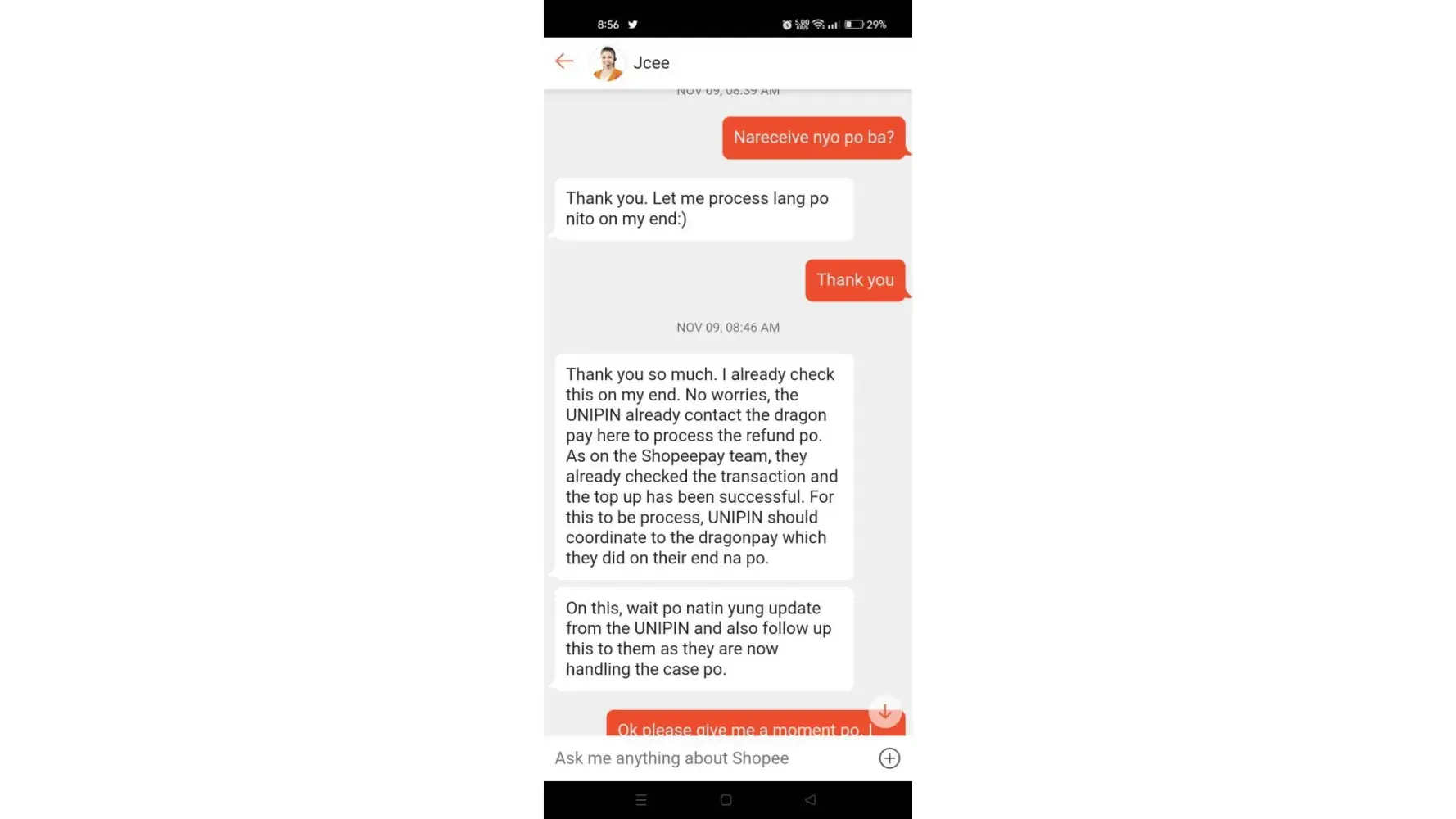Now, I do not know if I will trust shopee again because of my experience with this agent. Maybe I would not react this much, if the case im in was investigated properly or let us had a discussion first before arriving to a decision.