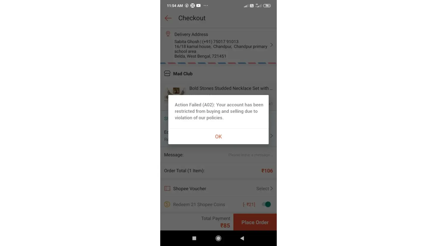 I have been logging in Shopee almost daily to collect the 100 coins (which is collectible daily for any account by click on the button of the day in Shopee weekly coin collection chart). Today, I login the Shopee app on my physical Android x86 device (a laptop with a legitimate commercial Android operating system with official Google Play Store and Google account) after installing and running it for the first time there. There was no warning and anything unusual in the app. However, after clicking on the weekly coin collection chart to collect today's coins, I was kicked out and banned from Shopee. Just like that bam! & snap!, without any warnings and recourse, effectively a 1-strike ban. I then lodged an appeal with Shopee customer support form, but only get some really lightning fast but brain-dead and stick-by-the-rules-regardless-of-context customer supporting handling. Anyway, my main compliant is about the 1-strike banning for collecting what any account would be entitled to collect anyway. Secondary is their customer support is rather superficial as well as their software or business logic is really suspect. In the end, in a few minutes I am banned from my long time account with a tiny existing coin balance of around 6700 coins translating to around 30 US cents. Well good-ridden of Shopee then. Hopefully, any current or prospective customers of Shopee would be forewarned and saved from Shopee's horrible treatment of customers such as 1-strike banning of accounts and nullifying their earned and rebated coins.