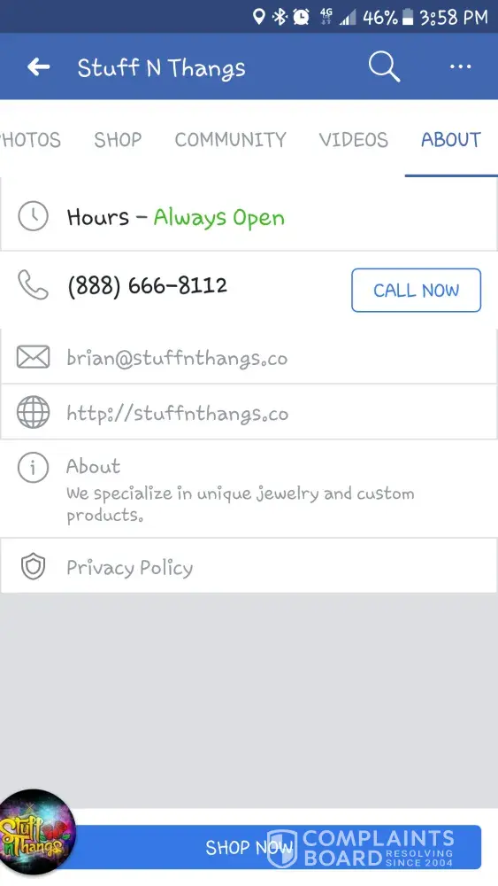 I ordered from stuffnthangs.co and paid for the product, never received. Phone number disconnected, sent multiple emails, sent messages via facebook, no response. They sent shipping info but did not send my order to USPS. Googled the address ans its an apartment complex. Every attempt made to contact them has went unresponded. Have abkut 3 emails from '[protected]@stuffnthings.co' confirming my order and even asked to review product. Which I never got at I lost money on. So basically I got ripped off via a store hosted by shopify