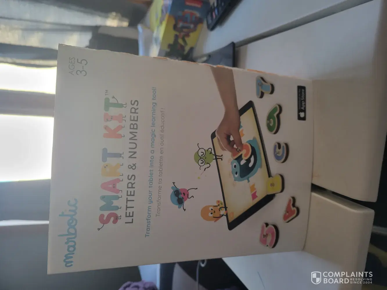 I purchased a Marbotic Smart Kit Letters & Numbers interactive game for my toddler yesterday. The toy is in box and the box has a thin cardboard cover glued on it. To get to the box i used a pair of scissors to cut the cardboard on one side.
