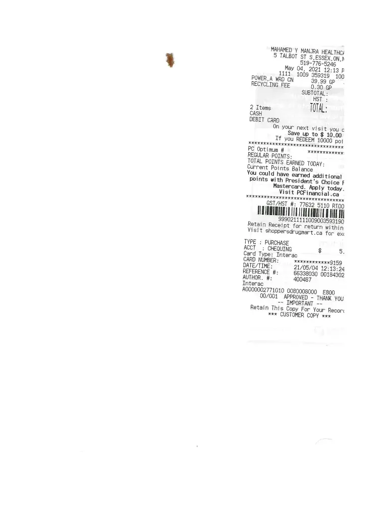 On may 06th 2021 at 9:50 am I went to shoppers to get my daily medication as I have been for about 3 or so months on this particular day. I need some groceries. So I went around and saw a bunch of 2L Oasis smoothie cartoons that were on sale because they were close to expiration so I grabbed 3 2L. I also saw Ice tea was on sale so I grabbed one 2L nof that...
